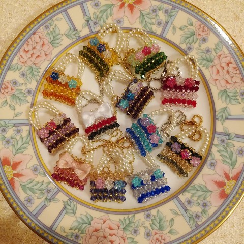 ビーズの眼鏡ストラップやスワロフスキーのブローチにもなるチャームもたくさん揃えました。