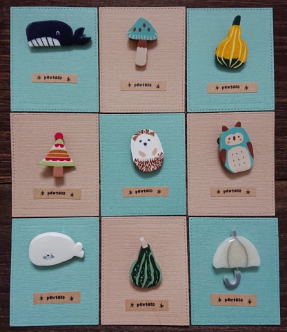 動物、食べ物、雑貨などモチーフは様々です。